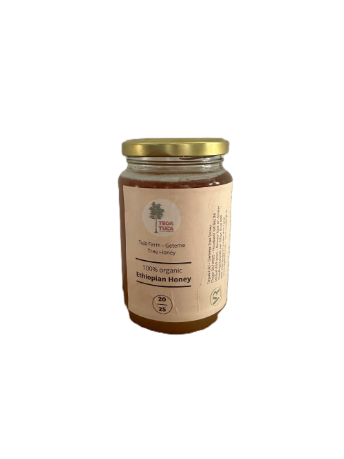 Deze honing wordt geoogst op de Tega & Tula koffieplantage in de hooglanden van Zuid West Ethiopië. Deze honing is geoogst in juni 2025 uit de bijenkasten, die hoog in de bomen zijn geplaatst. Het resultaat is een pure honing, zonder toevoegingen. De echte kenner zal er een vleugje koffie in proeven.
